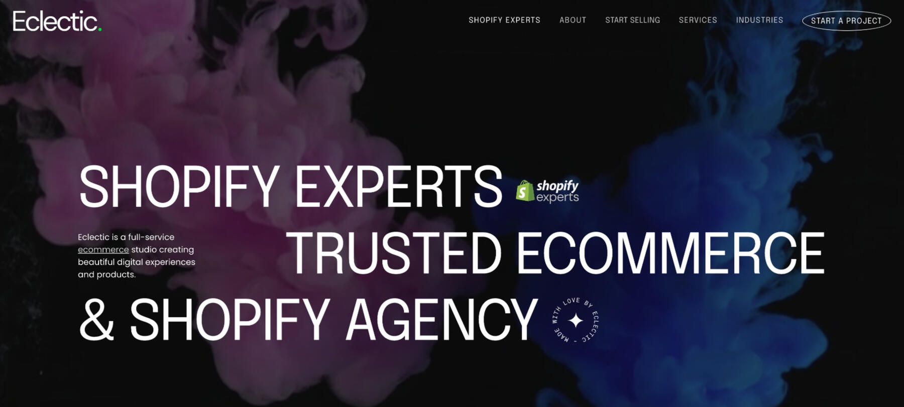 Established: 2020Specialization: Full-service creative studioAwards: Multiple award-winning Shopify AgencyFocus: Top-tier Shopify services, branding, design, engineeringOverview: Eclectic stands out as an award-winning Shopify Agency, renowned for its dedication to creating exceptional digital experiences and products. As a full-service creative studio, Eclectic excels in delivering top-tier Shopify services, with a strong emphasis on branding, design, and engineering. Their commitment to quality and innovation makes them a go-to choice for businesses seeking impactful ecommerce solutions.